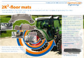 mass - PUR-RIM / spring - PUR flex foam 2K2-PUR foaming process Protoplast-Engineering continuously develops new technologies for PUR-processing. This has been resulting in the 2K2-process for manufacturing floor mats for vehicle cabins. The major advantage here is – similar to the modern 2K-injection molding - that two different materials merging in a single tool into one product. This patent pending process is very successfully used by Protoplast-Engineering for serial production since years. 2K2 floor mats Features:  • Outstanding elongation of break • Optimal resistant to abrasion • Chemically resistant • Neat surface finish • Protected against water absorption • VOC and FOG numbers to highest standards • Optimal sound absorption thru „mass – spring system“ • Customized surface coloring and texturing