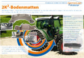 2K2-Bodenmatten Masse – PUR-RIM / Feder – PUR-Weichschaum Protoplast-Engineering arbeitet und entwickelt stets an neuen Verfahrenstechniken in der PUR-Verarbeitung. Dabei ist auch das „2K2-Verfahren“ für die Herstellung von Bodenmatten für Fahrzeugkabinen entstanden. Die Besonderheit bei diesem zum Patent angemeldeten Verfahren ist, dass ähnlich wie bei einem modernen 2K-Spritzguss –zwei verschiedene Systeme in einem Werkzeug, zu einem Produkt verarbeitet werden. Dieses Verfahren läuft bei Protoplast-Engineering seit Jahren mit großem Erfolg im Serieneinsatz. Eigenschaften:  • hervorragende Reißdehnung • optimale Abriebfestigkeit • gute Chemikalienbeständigkeit • sauberes Oberflächenfinish • Schutz gegen Wasseraufnahme • VOC- und FOG- Werte nach höchsten Anforderungen • optimale Schallabsorbation durch „Feder-Masse-System“ • Oberflächenfärbung und –Struktur nach Kundenwunsch
